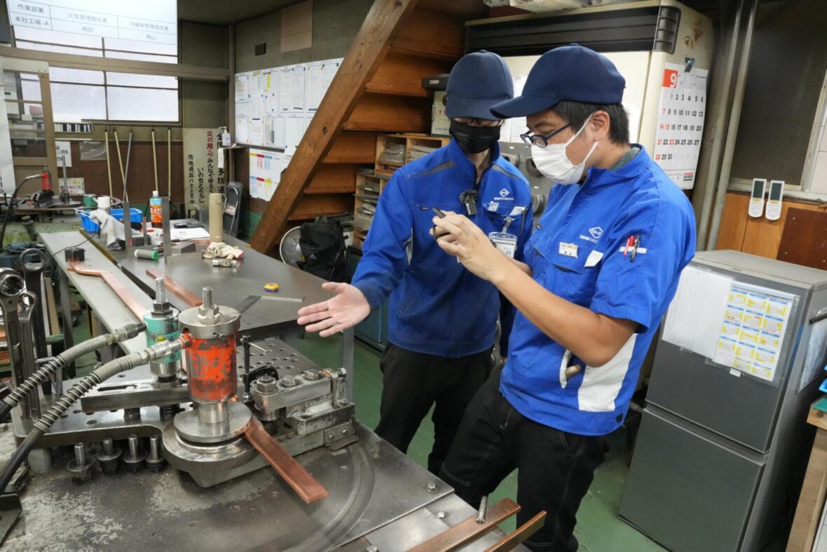 座学のあとは、実際にプレス作業の現場へ向かい、撮影実践スタート!