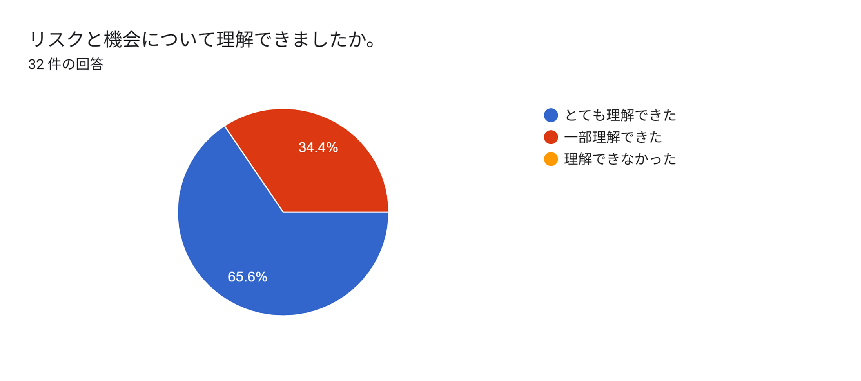 リスクや機会に対する例え話は分かりやすく、説明は理解できたと思うがそれを実作業にあてはめて考えるのは少し難しいと感じました。