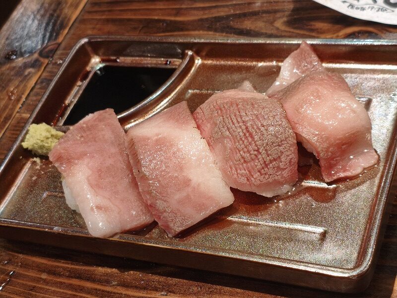 料理はどれもおいしかったですが、特にコースとは別に個別注文で御馳走してもらった肉寿司が最高でした。