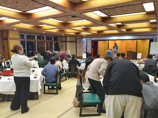 会場は温泉旅館の「ホテルセイリュウ」。一年間お疲れさまでした、ということで、おいしい食事を囲みながら和気あいあいとした時間を過ごしました。普段は仕事の話が中心になりがちですが、この日はリラックスした雰囲気でいろいろな話ができ、良い気分転換になりました。