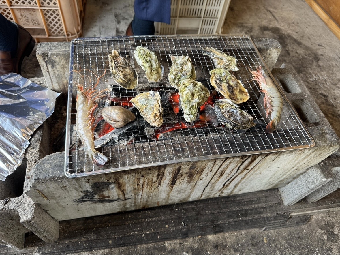 打ち合わせ後のお楽しみは焼き牡蠣。